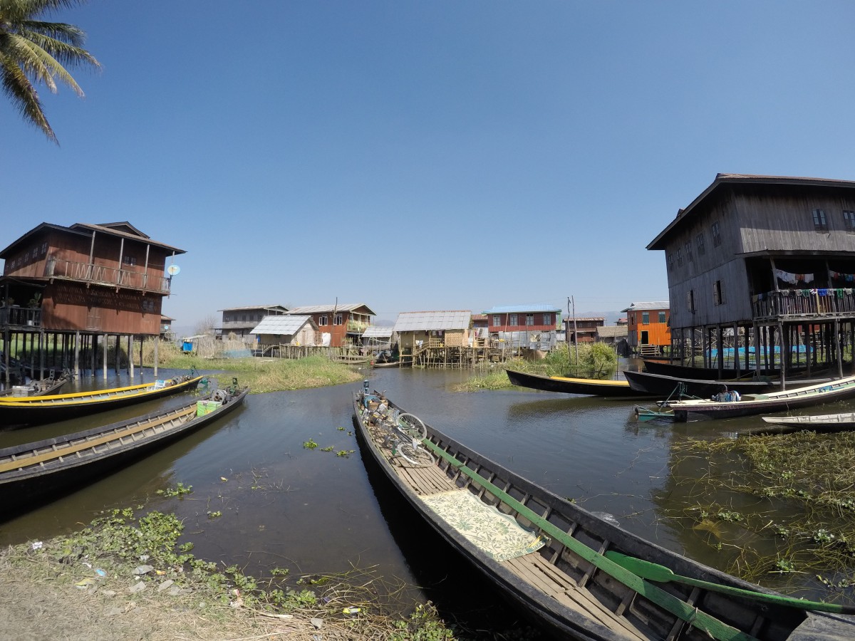 Après avoir traversé le lac Inle en bateau, nous arrivons à Nyaung Shwe, un village au nord du lac où se trouvent les restaurants et hôtels de la région. Nos bagages sont déjà à notre hôtel, ainsi pouvons-nous nous reposer de la longue marche et aller souper avec Will et Emie.
