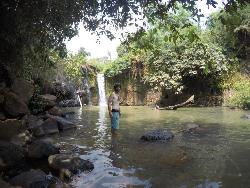 Le lendemain, petit déjeuner l’esprit pas très frais, puis retour à Banlung, en passant par un petit lac niché dans le cratère d’un volcan. Ultime baignade magnifique!