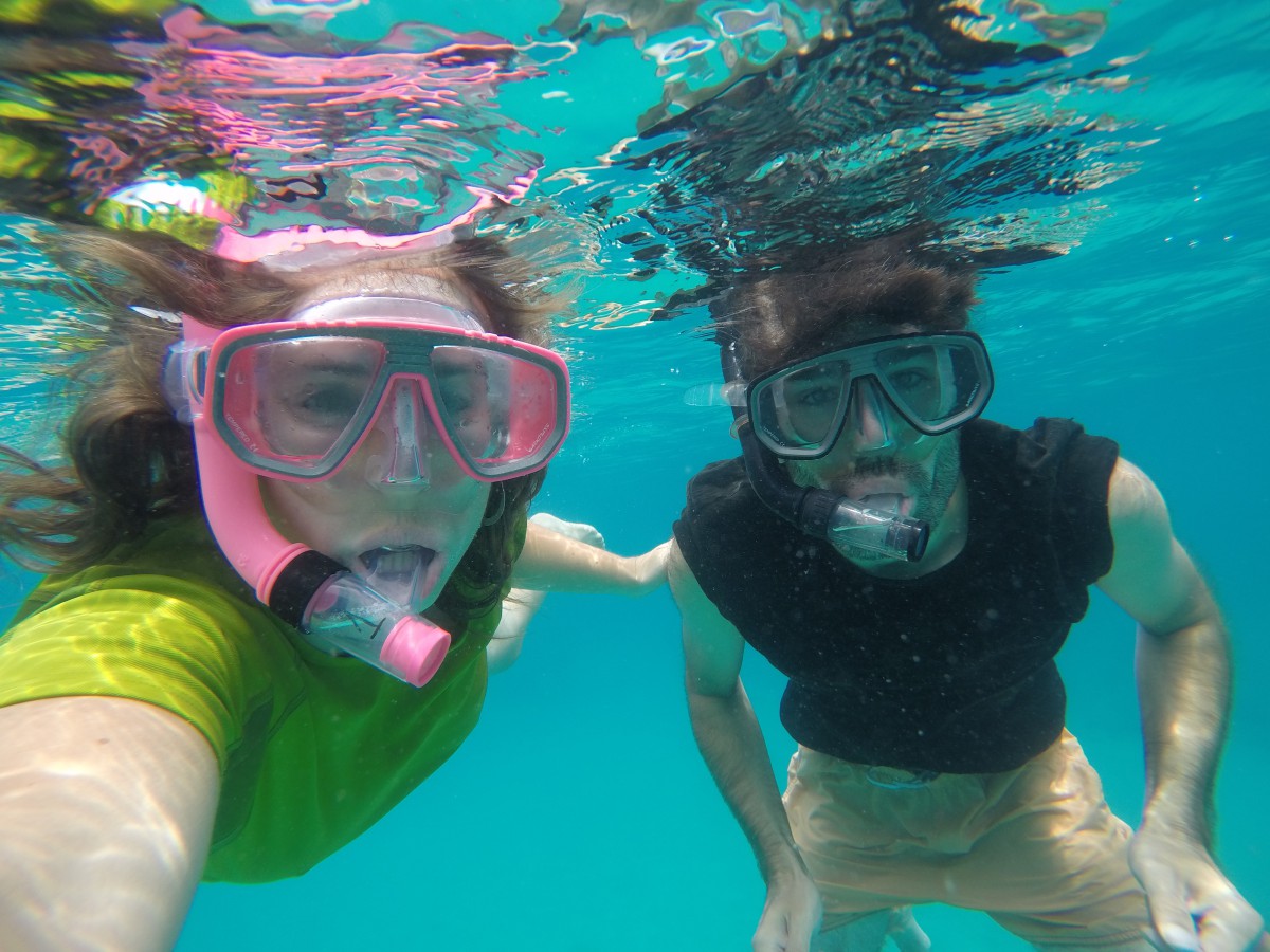 On doit bien l’avouer, le premier jour, après avoir poser nos bagages, nous faisons une heure de snorkel et nos dos blancs et immaculés prennent une couleur rouge crevette au top. Nous passerons donc le reste des jours en T-Shirt et à l’abri à l’ombre.